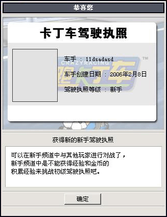 通过新手训练后,会颁发新手驾驶执照,以及免费获的一辆新卡丁车,开始您的跑跑之旅行!
