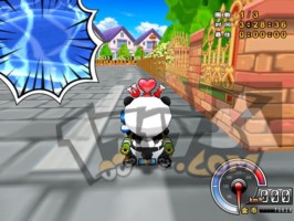 | 再往后开就能看到城镇运河了,在快上桥的地点投下水泡攻击前方对手的话,命中率是比较高的。因为是直角弯,不论是抓地还是飘移都不容易完全贴边过弯。 |