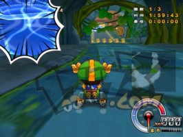 | 在一开始的道路注意贴边行驶(特别是在第二圈,第三圈)能够躲开后方水泡袭击。而水泡的第一个最佳进攻点则是在刚开发不远的那个直角弯道上。一般在过此弯时都会车身都会靠外一点容易被水泡水中。 |
