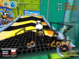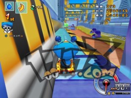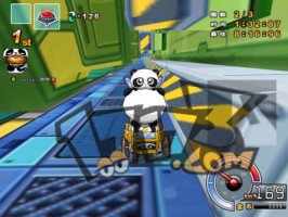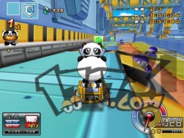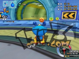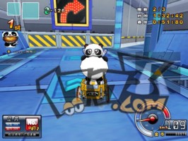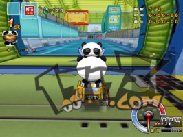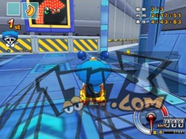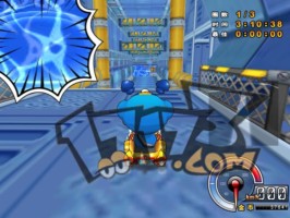 | 再往前开又是一个直角弯,在道具赛中建议直接抓地贴边过弯。之后就会看到本图第一捷径了。从右边自动门上经过会使路线短很多,但也要估算好自己车子的速度与门的距离(自动门开启与关闭的频率很高平均2秒一次)被门给卡住可是要复位延误不少时间的 |