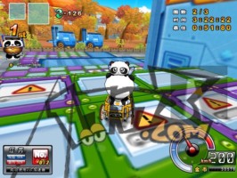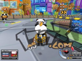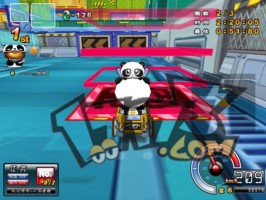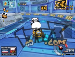 | 如果上了最后一条捷径,就可以一路直接行驶。到上图这位置可以放置香蕉皮或是地雷等道具。在集装箱上方水泡都是攻击不到的。 |