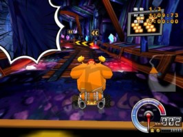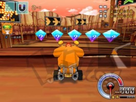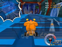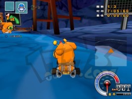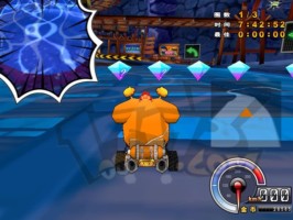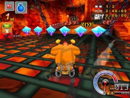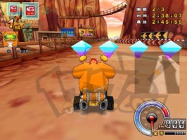 第二个可以双吃的道具带是在火山洞窟当中。从左往右数第3,4个道具也可双吃。但是在之前要将车身调整为略带倾斜。以45度方向从第3,4个道具中间直线穿过去即可。难度比第一个要大。 |
