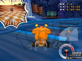 最后补充一点,就是此图上用导弹穿射截止前方对手的有利地点了。从上面两幅图中可以看出,在最后快到终点前的路上跟瀑布下面的水路地带有几处是在同一直线上的。第二幅图的位置正好可以顺路截止前方跑得比较远的对手。所以手上有导弹的话在经过那地方的时候,不妨按住ctrl键。或许就会看到红色的瞄准标志就会闪烁起来了。