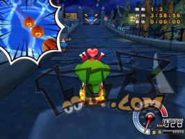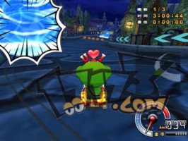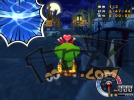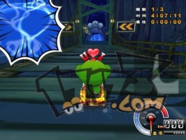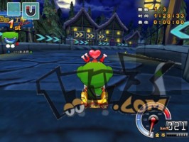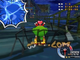 | 之后有一道比较长的弧线弯,可以贴内道直接抓地弯这样比飘移快。在到转弯角度最大的地方时如果放上香蕉皮的话,那样也会有不错的影响力。 |