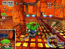 | 矿山岩浆洞穴在刚出发不久,就会经常看到很多处上下起伏的索道,虽然索道非常峡窄让人联想到在这些路段上用水泡阻截敌人是不是很好,但经过实践证明,只要在索道上贴紧左右两边行驶(钧在索道上的铁环是可以穿越的)都可以避开水泡。 |