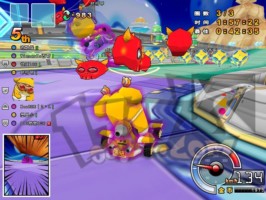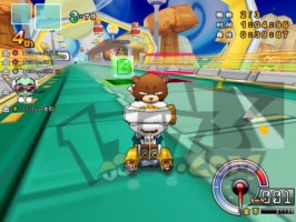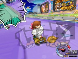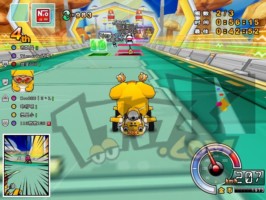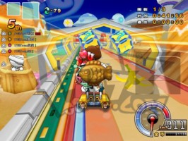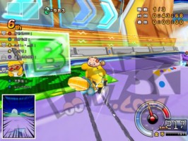 | 在这个在跳台前面放置香蕉皮的话,威胁性比较大。如果踩中的话,会被板撞回来。而且偏左或右的话,又会很容易被水泡击中。上了跳板之后的小道非常峡窄,也很适合放香蕉或地雷道具。但不要一上去就放(那样不能让人踩中)要跑一段距离再放置 |