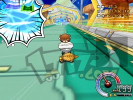 在快到终点前有两个喷射器,用小飘方法去踩加速器比较理想。在喷射器前后放地雷或香蕉也是比较不错的阴人方法。 |