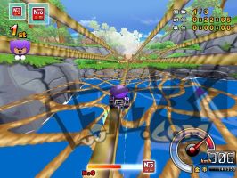 上去之后走直线,快到桥处右漂移,要落到瀑布上面的桥中间。否则会直接复位。 |