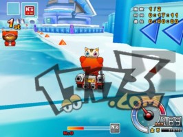 | 在飘移至悬空的时候,就要准备扳正车身了,这时会看到车会贴着浮起的一个冰块飞跃过去使得路线比较短。 |