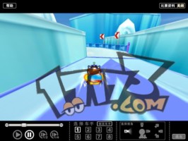 | 从上面一层行驶一段距离又可以看到一条捷径了。这里如果有N20的话,在之前用加速然后靠左边刚上跳台马上飘移,在飘移悬空时可以扳正车身了。在降落时会擦过一块浮冰然后切入下面的弯道,路线比较短。没用加速飞跃飘移的最好抓地切入下面的弯道了。 |
