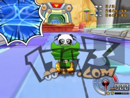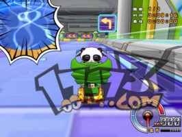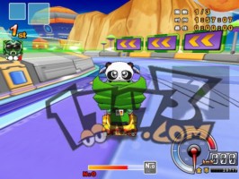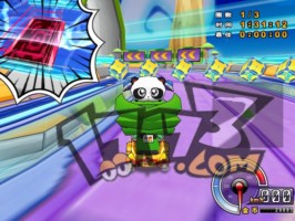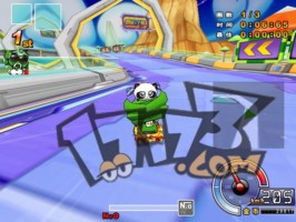 | 在过了山洞之后的地方,下面有一个不规则的比较大的U型弯。这里最好是使用飘移过弯才能使路线最短。另外,要是看到对手到达这地方时放恶魔也是比较好的骚扰手段。如果是自己跑在前方,在过弯之后马上放个香蕉皮也是很不错的。 |
