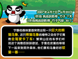最后说一下国服在今天(6月7号)更新的挑战熊猫乌鲁的任务小经验吧。此任务分别正反方向的森林奇石中跟乌鲁进行竞速赛。虽然只能用平板车跟乌鲁比赛,不过只在在限定的1分50秒之内跑完全程就可以了。(乌鲁会在时间快到的时候,减速慢行。)新手玩家可以取用全程抓地跑,就在U型大弯那边飘一次就可以了。 |