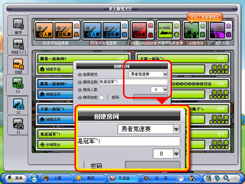3. 玩家也可以点击创建按钮,自己选择勇者竞速赛模式新建房间,创建房间时可以选择房间人数,最少4人。