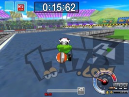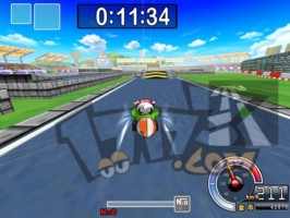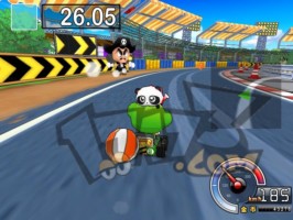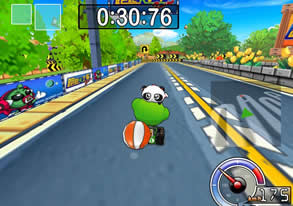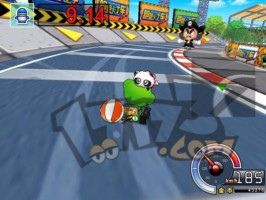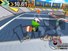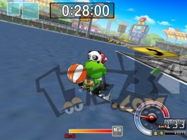 | 倒数第二个道具带在弯道中间,而最后一个海盗又是在弯道的右侧。因此在吃道具时以及吃完道具后,都要马上抓地往右边拐一些才能比较好击中最后一个海盗。 |