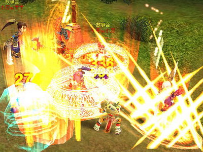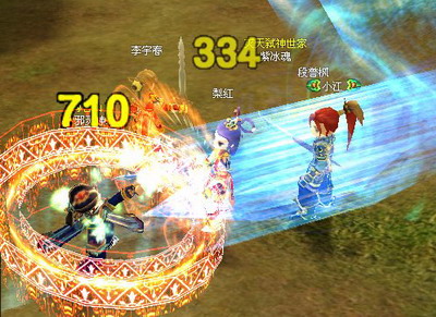 其次一个让人头疼的职业是枪。尽管封测中枪所用的合成石头的属性是 15 攻的,但 PK 中展示出的攻击力度依然十分强悍,一个技能可以瞬间减掉对方 4/5 以上的 HP !如果该武器合成的石头属性增加的是武功攻击力,那后果可想而知了。不过相对四个职业而言,枪客的防御也是最大的诟病,尽管增加了医生的防御状态,但是在受到两个以上对手同时攻击的话同样是非常危险的,即使有九转丹防身也无济于事,如果游戏运行时不够流畅那更是险象环生了,所以在团队 PK 中,枪客也成了最吸引对方火力的职业,最容易受到围攻而倒地回城。不过也因为防御和攻击对比的悬殊性,在一对一的 PK 中枪客攻击优势就比较容易被突显出来,如果考虑使用临时增加防御的道具那就更加的如虎添翼了。但是枪这个职业在团队 PK 中一旦落单就比较吃亏,这时就需要前面提到的刀客来配合和掩护,如果以个团队中两名以上职业是刀,那么在 PK 中的队员休整喘息的机会就会比较多,不容易被集中火力的对手有效打出打快速歼灭的战术。
