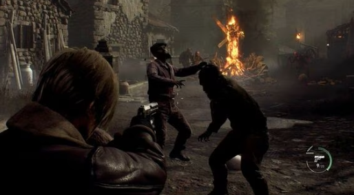 而这一次的《生化危机4重制版》则是相当忠实于原作的重制版本。虽然操作等方面有所改进,但基本的游戏系统仍然和原作是一样的,即使以越肩视角用枪瞄准并射击敌人的游戏(第三人称射击)。