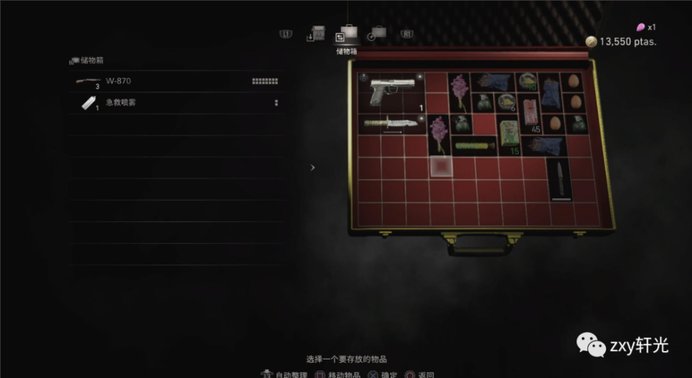 游戏新增了一个储物箱机制,在打字机存档点可以将枪支传送到这个“异次元箱”,而且储物箱的格子的无限的。