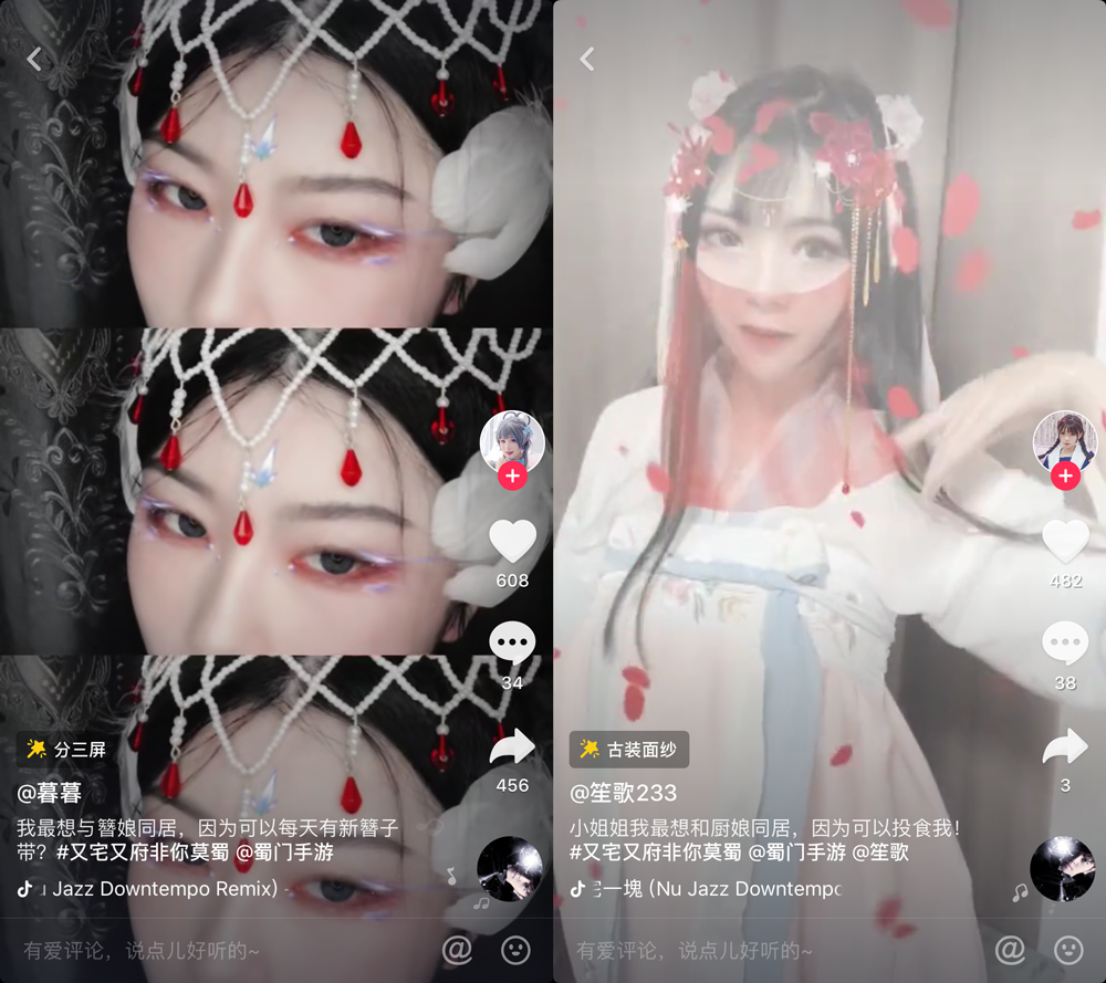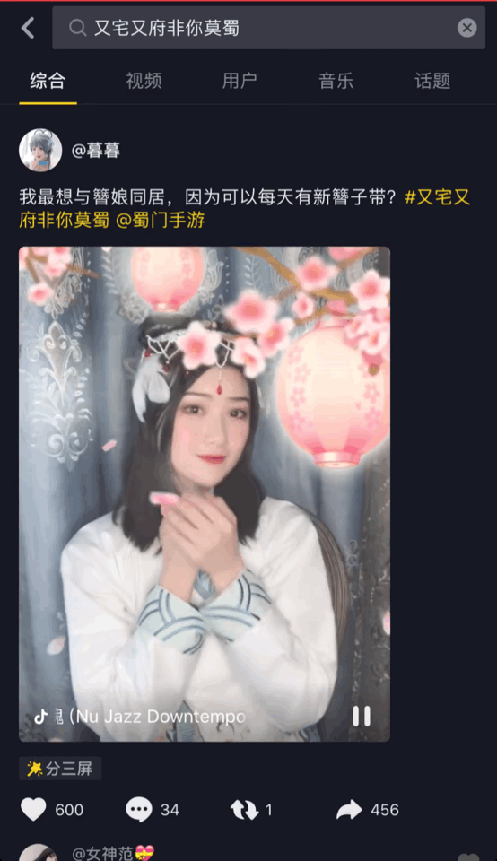 为了弄明白这是啥挑战,经过我不懈的努力,从头到尾刷了一遍,难道我会说是为了看小姐姐?原来是关于《蜀门手游》的挑战赛,这个活动是17173联合抖音共同发起的。我说呢,也难怪会有这么多网红小姐姐参与其中。接下来,我们就带你们一起看下参加活动的小姐姐吧。