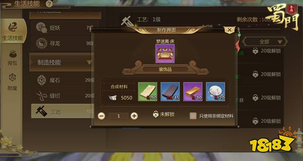 苗圃产出的作物,除了作为材料兑换成资源,用以升级仙府家园之外,同样是打造仙府家具的必备材料。桌椅板凳,床榻被褥,一切都需要玩家从新制作。点开生活技能界面,选择工艺技能,即可看到自己当前可制作的物件,各类家居饰品,装饰自己的家园。