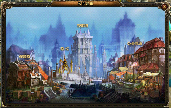 当公会达到一定级数时,公会内就会出现一些功能建筑。目前建筑有: 公会商城:在这里玩家可以通过捐献得到的贡献值,购买一些外面买不到的好东西。 公会保管箱:平时不用的物品,公会会提供一个储物空间来给你存放,当然,每个人只能看见自己的物品。 祭坛:在这里玩家可以使用贡献值来祈福,运气好的话会得到属性逆天的物品哦。 技能塔:在这里玩家可以学会一些公会能独有的技能,让你能力更上一层楼。 |