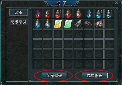 每件装备都有耐久度,使用装备时会损耗耐久,耐久度降为0后,装备破损,效果消失。 耐久度降低后,需要进行装备修理,可在NPC杂货商,武器商,防具商,首饰商,药师,秘籍商处均可修理。还可以使用随身商店中的修理功能随时修理装备。 破损的装备修理除了需要银子还需要材料。