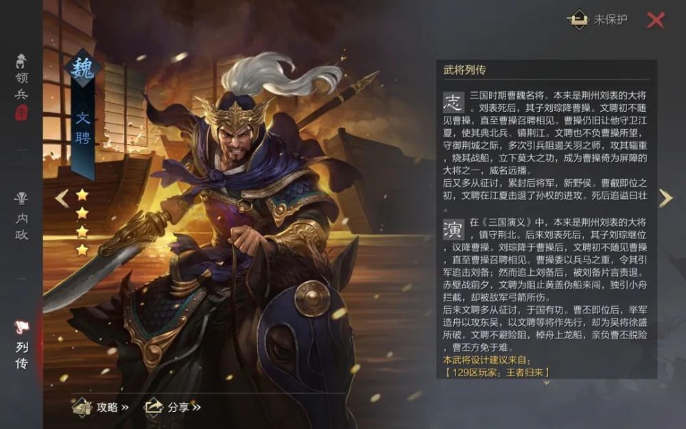 而主公的名字,也留在文聘的武将介绍页面中
