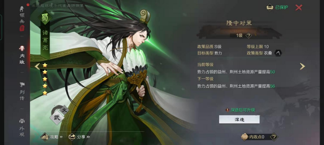 「率土之滨」蜀阵营全武将政策系统图解攻略-S级政法卧龙出山