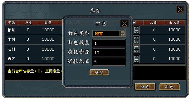 非常方便的功能,当城池的资源容量到达上限,可以把资源打包起来,并可以在任何一个城池中打开资源包裹,资源就会立刻加到当前的城池上面,解决一些燃眉之急。