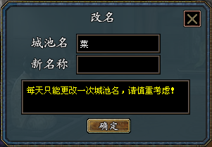 玩家可以任意为自己城池取自己想要的名字,但要记住每天只能更改一次城池名。