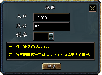 税率调整要依照民心的数量来调节,税率越高民心就越低收入的贝币就越多,民心低到一定程度城池就会很容易被人占领。