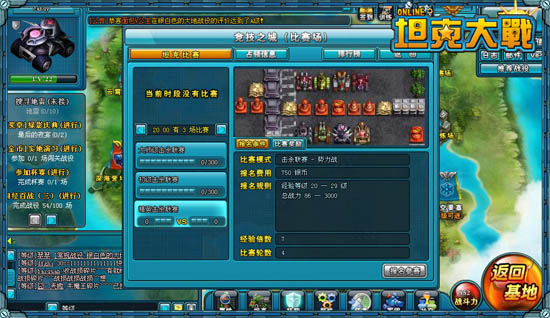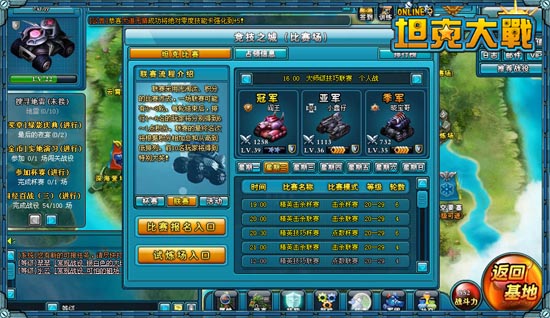 在击杀模式中,玩家们的主要任务就是击杀对方的坦克,战斗结束时按照击杀数目判定双方胜负。 势力战的每一轮的比赛,获胜一方每位玩家都能获得3点积分,失败一方每位玩家获得1点积分。如果参与比赛的人数为奇数,则会有轮空的玩家,轮空的玩家获得2点积分。所有比赛结束后,双方全体玩家积分相加,积分高的一方获胜 |