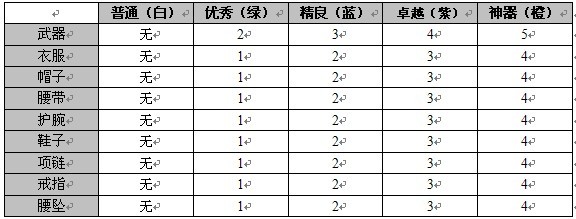 不同品质的装备拥有不同数量的符文槽,具体符文槽数量如下图: