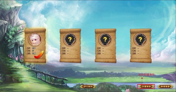 当你输入正确的帐号密码后便可以进入到“人物角色选择界面”,如下图: