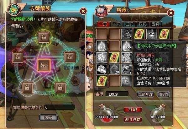 5.卡片对装备的位置有要求,卡片只能插在特定的装备位置。