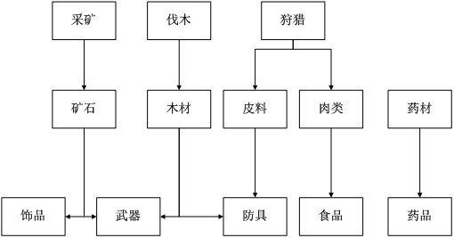 当你达到10级的时候,可以在城里找到相应的NPC学习生活技能,每个角色最多可以学习任意两项生活技能。 学习生活技能还有等级限制,人物等级10级可以学习生活技能1级,18级可以学习生活技能2级、26级可以学习生活技能3级,34级可以学习生活技能4级,42级可以学习生活技能5级,50级可以学习生活技能6级,58级可以学习生活技能7级,66级可以学习生活技能8级,74级可以学习生活技能9级。 生活技能一共包括3项采集技能与5项制造技能。采集类技能包括:采矿、伐木、狩猎。制造类技能包括:武器锻造、防具制造、饰品加工、制药、烹饪。采集系统的产出和制造技能的材料需求如下图: