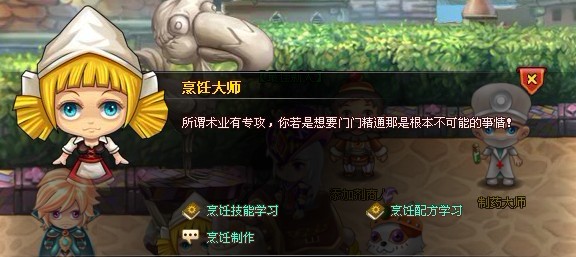 学会生活技能后,在成功使用生活技能时,玩家能获得一定生活技能熟练度,当本等级的生活技能熟练度练满后,可以找本专业的导师提升专业等级。你还可以从专业导师处学到一些产品的制作配方。 采集类 伐木―可以让你学会砍伐木头,主要获得材料:木材 采矿―可以让您学会挖掘,主要获得材料:矿石 狩猎―可以让您学会狩猎,主要获得材料:皮料、肉 制造类 武器锻造―可以让您制作各种各样的兵器,主要材料来源:木材->伐木、矿产->金石。 防具锻造―可以让你制作各种各样的防具,主要材料来源:木材->伐木、皮料->狩猎。 饰品加工―可以让您制作各种各样的首饰,主要材料来源:矿石->采矿。 制药―制药可以让您制作各种各样的丹药,主要材料来源:草药->打怪掉落。 丹药的种类很多,有的可以帮你恢复生命,有的可以帮你恢复法力,还有的可以帮助你即恢复生命也恢复法力。 烹饪―烹饪可以让你制作各种各样的食物,主要材料来源:肉->狩猎。 食物的种类很多,有的可以增加生命上限,有的可以增加攻击力,有的可以加防御力。 |