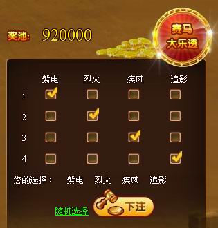 5、种植发财花要消耗一包化肥,化肥3小时刷新一包,上线为8包。 二、赛马场 1、赛马规则 ⑴、每天有三个时段开放赛马场,分别是上午10点、下午16点和晚上20点。 ⑵、赛马结束后30分钟内与赛马开始前10分钟不能下注。 ⑶、每次只能对一匹马进行下注,每次下注金额不得超过50万金币,每场赛马只能投注1次。 ⑷、玩家等级必须达到50级才可进行赛马投注。 2、赛马乐透 乐透每次押注固定为5000金币,押注时间到后停止押注。玩家若猜中则可获得奖池内所有奖金,多个玩家猜中则奖池奖金均分。