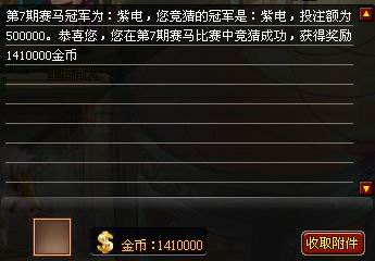 4、中奖通知 赛马比赛结束后5分钟之内,系统会向投注玩家发送邮件,通知竞猜结果。