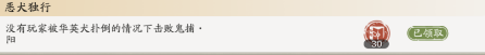 完成条件:没有玩家被华英犬扑倒的情况下击败鬼捕·阳。