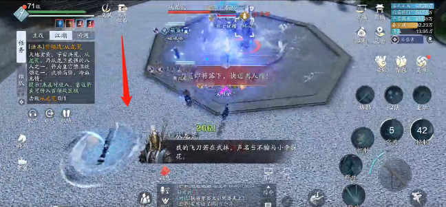 - 跟随禁卫身后的视野盲区或利用禁卫视野范围触及不到的地形处使用大轻功飞跃至箭头处触发流程;