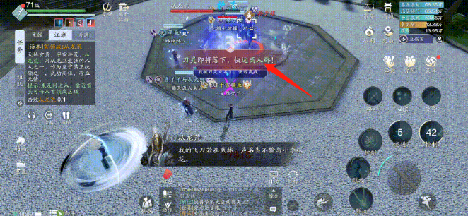 “刀光剑影”在面对第二个首领从龙荒时可触发,当首领血量达到百分之80后,会同时召唤一个带护盾的影卫和飞刀,影卫存在一段时间后会释放漫天花雨技能,飞刀在倒计时结束后将锁定最近的一个人并向他移动。