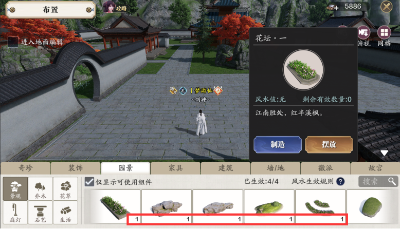 与家居摆放部分的家具不同,奇珍摆放没有数量上限限制,只要有可制造和摆放的奇珍摆件,就尽量摆上。