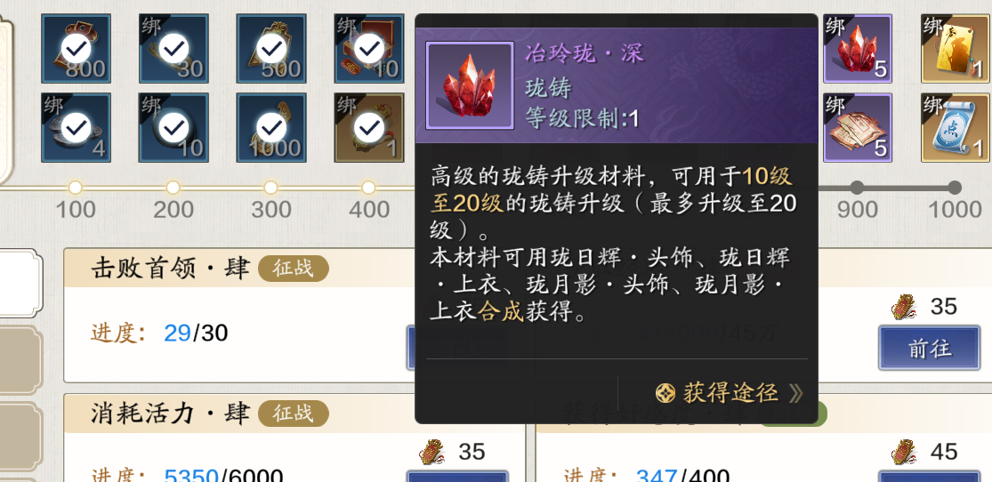 目前珑铸玩法材料的获取都不难,但是每周给的数量都很少,想要达到饱和还是需要把每周的材料全部都获取满才可以哦。