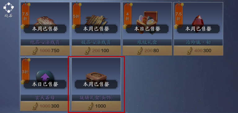 天魁币商店在本次更新后新上新了珑铸礼盒(头饰),每周限购5个。所需的天魁币还是蛮多的,总共需要5000个。