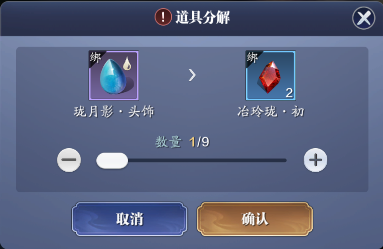 每个珑月影·头饰/珑日辉·头饰可以分解2个(非土豪玩家不建议)