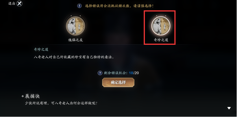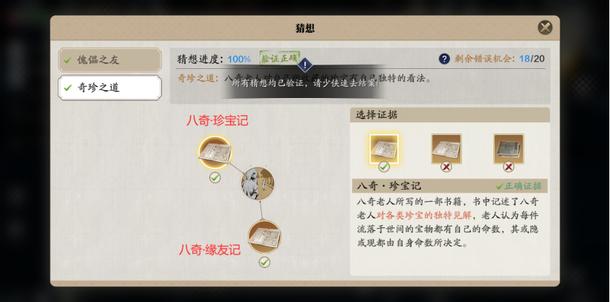 完成猜想后,前去断案,依次选择“给宝藏找到有缘人”和“奇珍之道”,即可以圆满完成啦。