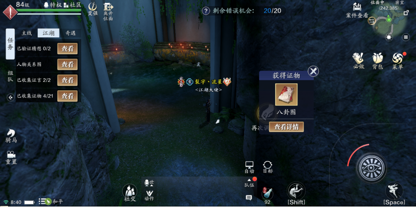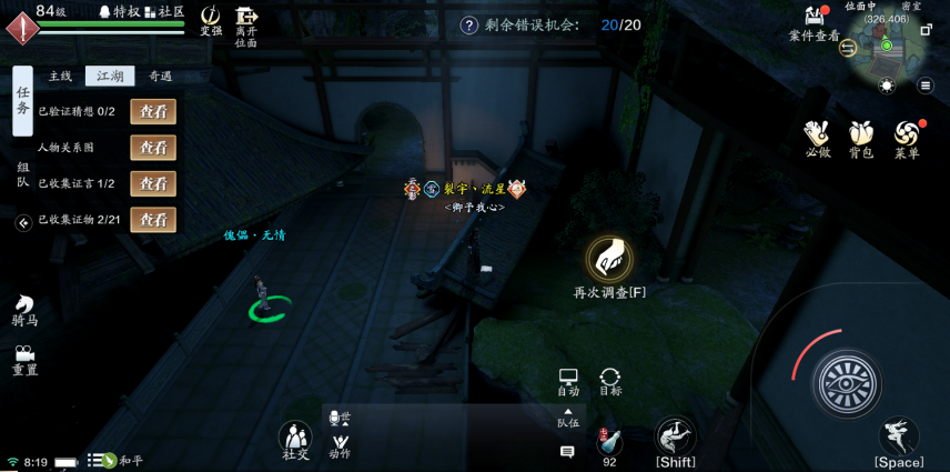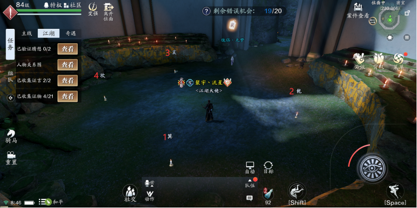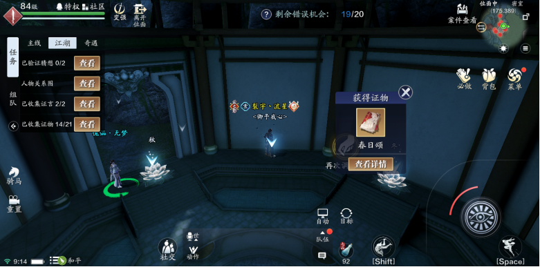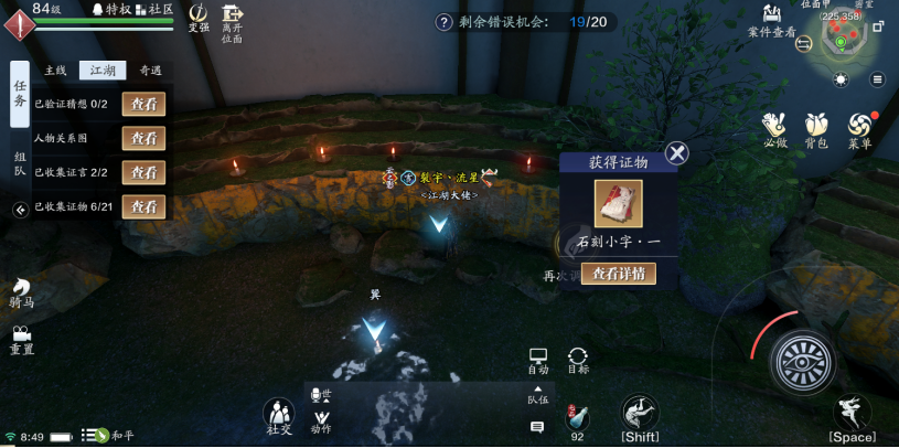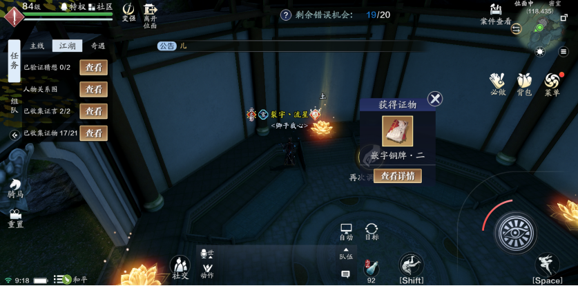 此时,少侠可以继续在周围使用搜证技能,即右下角平A键位处的眼睛图标,获得以下证物,具体坐标和详细地点如下: