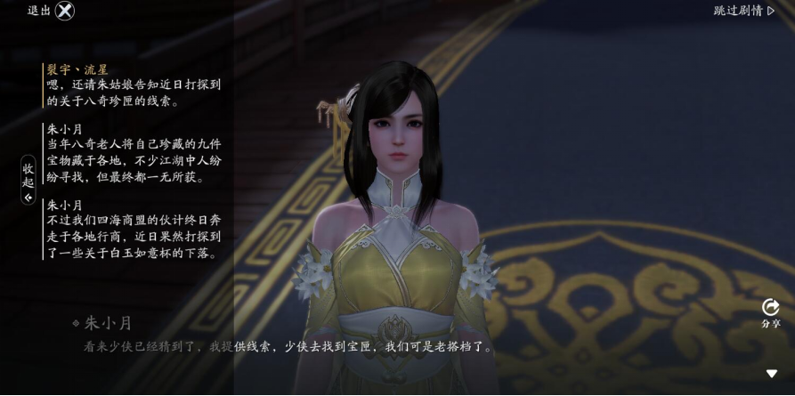 开启出现的宝箱,获得证物白玉如意杯[密室(121,288)],至此,可以开启断案了。