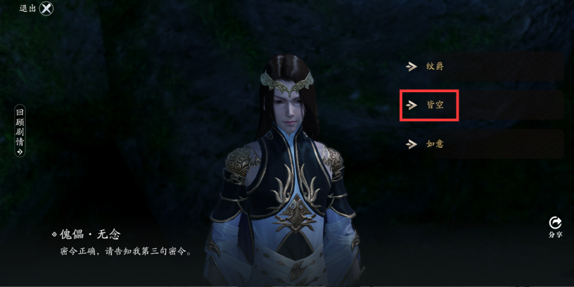 与所有傀儡对话完后,回到傀儡·无念身边,与傀儡·无念对话,选择“我要进去”-“传入密令”选项,提交密令,密令依次选择:“缘友”、“无殇”、“皆空”,选择正确后,即可进入密室,继续断案任务。