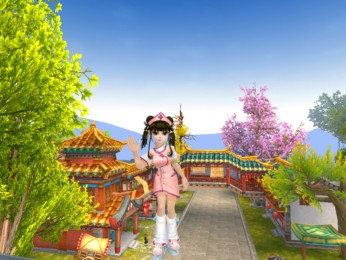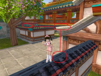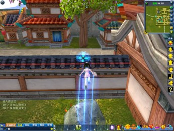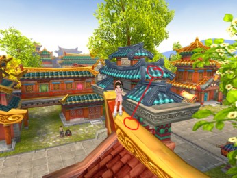 第二步:向右转,由院墙跳到房檐上,再用轻功跳到对面的房檐上。
